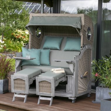 Das exklusive Gartenmöbel gibt es schon als Einsteiger-Modell mit zwei unterschiedlichen Geflechtarten. Der Seemöwe ist ein wunderbares Einsteigermodell. Er sieht nicht nur schön und edel aus, er verfügt auch über ein ganz außergewöhnliches Extra: zwei Bullaugen an den beiden Seiten.